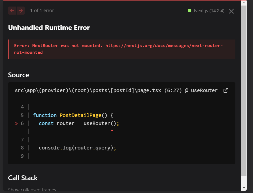 NextRouter was not mounted. https://nextjs.org/docs/messages/next-router-not-mounted 본문